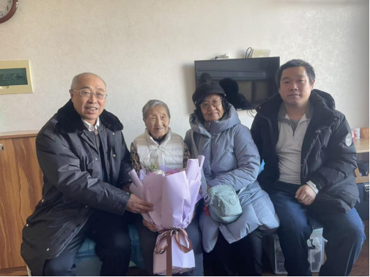 2026年1月8日,春节前夕,物理学院光信息科学与技术系的张汉壮、纪文宇、王海华、潘凌云、门志伟、迟晓春等老师,代表学院全体师生一同去看望了国秀珍、米辛、蒋占魁、陆国会、里佐威五位在长的老前辈。