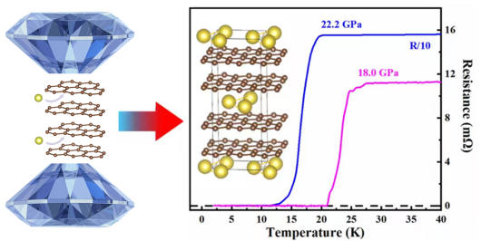 近日,吉林大学物理学院高压与超硬材料全国重点实验室王洪波教授等人在新型碳基超导体研发方面获得新进展。自从发现超导电性以来,新型高温超导体的探索一直是凝聚态物理与材料科学领域的研究热点。低维度长期以来被认为是促进高温超导的重要因素。石墨插层化合物(graphite intercalation compounds, GICs)作为典型的二维材料体系,其独特的电子结构和可调控的层间相互作用,使其在探索高温超导机理与新型超导材料方面备受关注。然而,尽管经过多年的努力,石墨插层化合物中的超导转变温度最高纪录仍停留在2007年报道的CaC₆体系,在高压下仅为15.1 K。