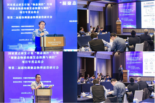 2025年12月19-21日,国家重点研发计划“物态调控”专项项目“凝聚态物质的激发态探测与调控”年度总结会暨第二届超快凝聚态物理前沿研讨会在长春圆满落幕。本次会议由项目承担单位中国科学院物理研究所和参与单位吉林大学物理学院联合主办,吉林大学物质模拟方法与软件教育部重点实验室协办。中国科学院院士、复旦大学龚新高教授(线上),中国科学技术大学张振宇教授,中国科学院半导体研究所骆军委研究员、中国科学院物理研究所张清明研究员、汪非凡研究员,上海交通大学向导教授,电子科技大学齐静波教授,清华大学杨鲁懿副教授、孙志远副教授,北京大学彭莹莹研究员和吉林大学丁大军教授、邹勃教授、李全教授、王彦超教授、王春成教授、项目首席中国科学院物理所孟胜研究员、项目组成员等30余位专家和学者参加了此次会议。各位专家学者齐聚一堂,共同探讨超快凝聚态物理领域的前沿问题与发展趋势。
