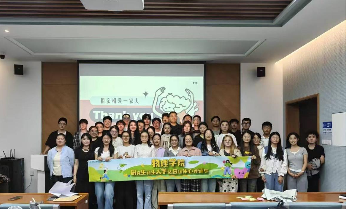 为促进新生相识互信、增强团体凝聚力,帮助其更快适应研究生生活,2025年9月18日晚,物理学院2025级研究生新生“相亲相爱一家人”团体心理辅导活动在物理楼333会议室温暖开展。本次活动由学院研究生会心理部精心组织,40余名新生齐聚一堂,在轻松愉快的互动中拉近心灵距离,传递温暖关怀。