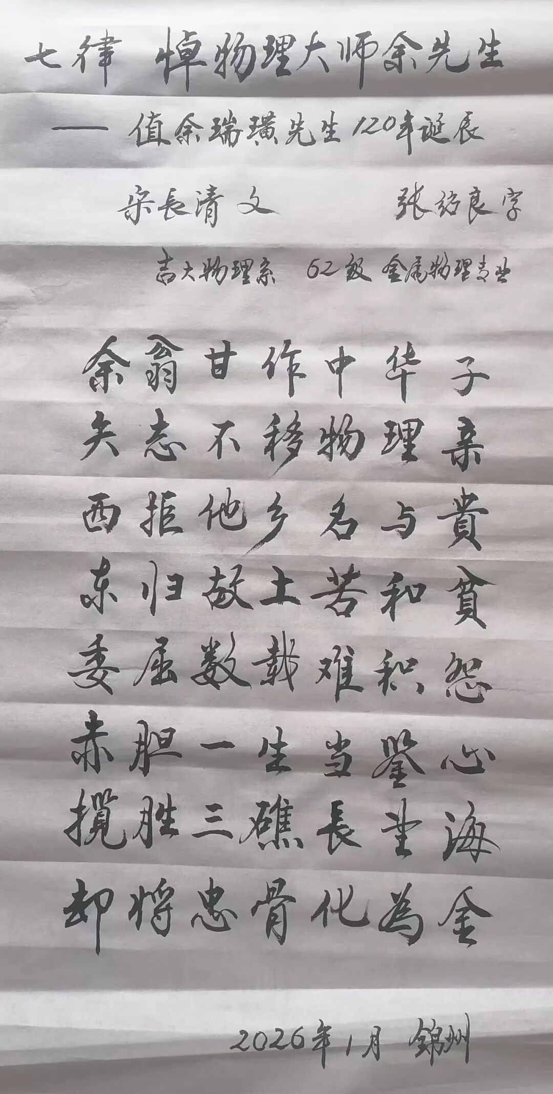 余先生是著名物理学家,国家学部委员,一级教授。吉林大学物理系创始人,第一任系主任。