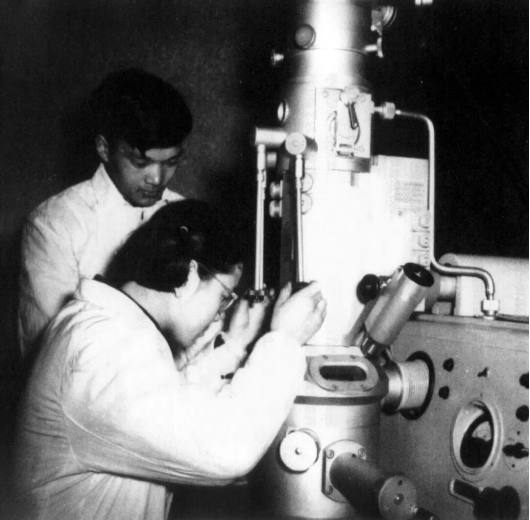 学生在做电子显微镜实验