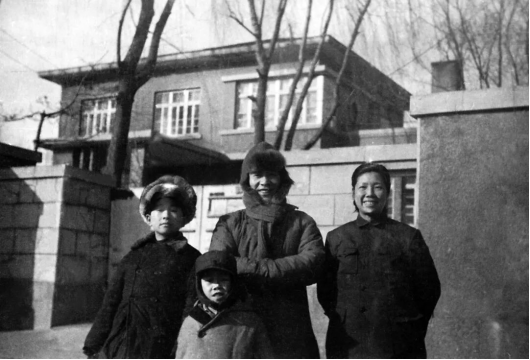 1952年冬,余瑞璜夫妇与儿子余真华、余理华在长春住宅小楼门前